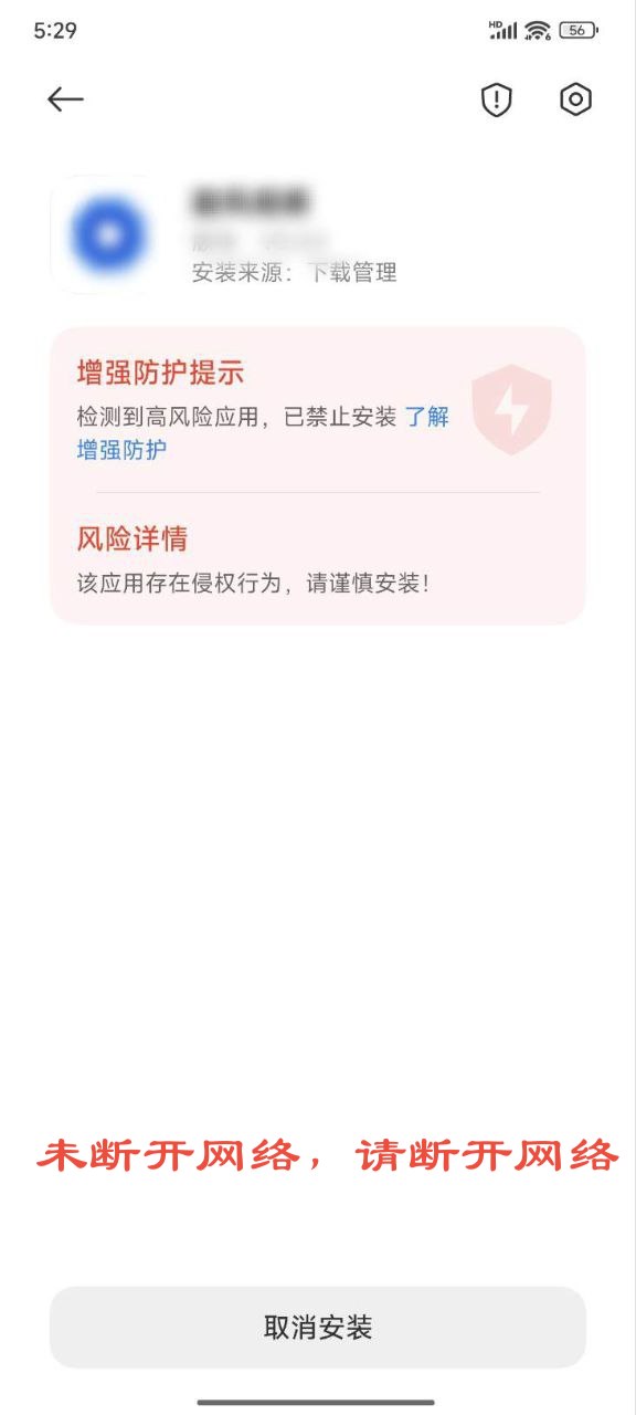 3.取消系统默认风险提示后,再次点击apk安装即可